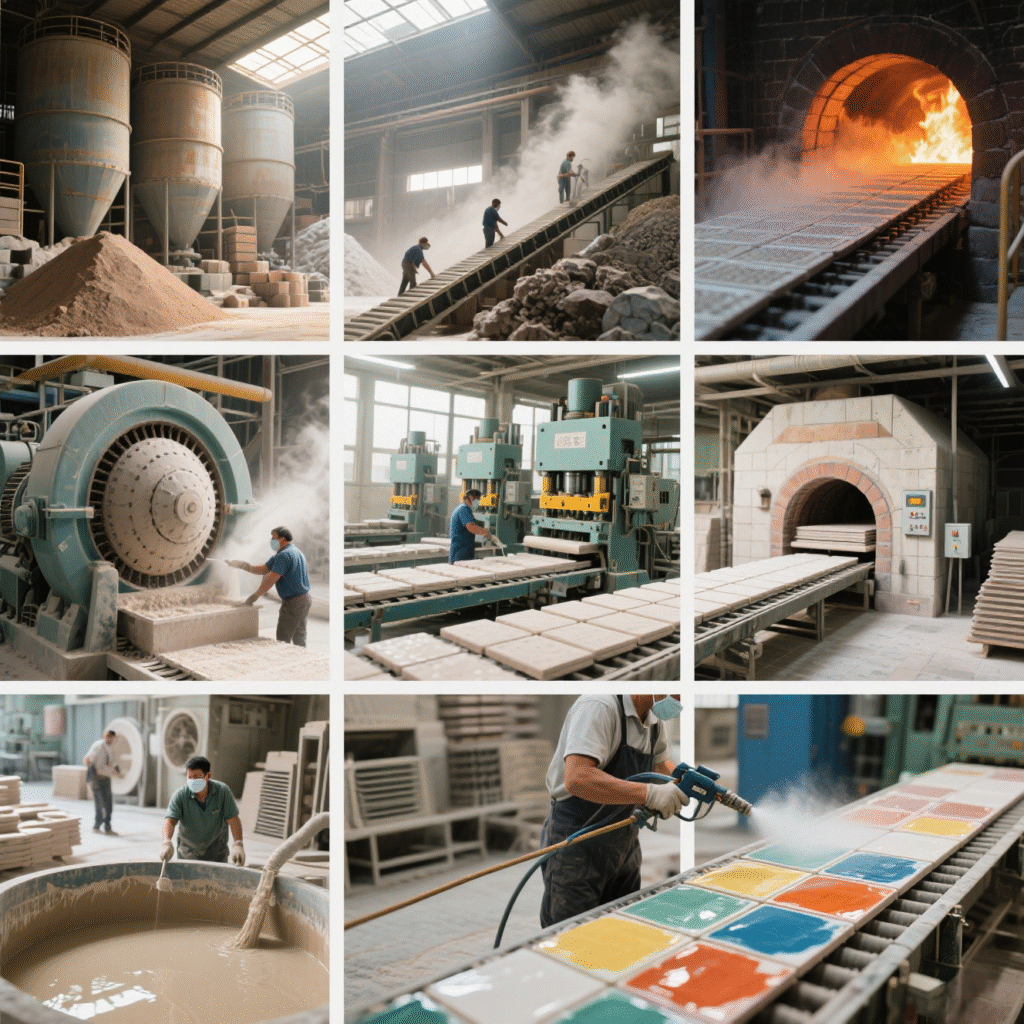 3. Firing: Send blanks to high – temp kilns to sinter into hard tiles.
