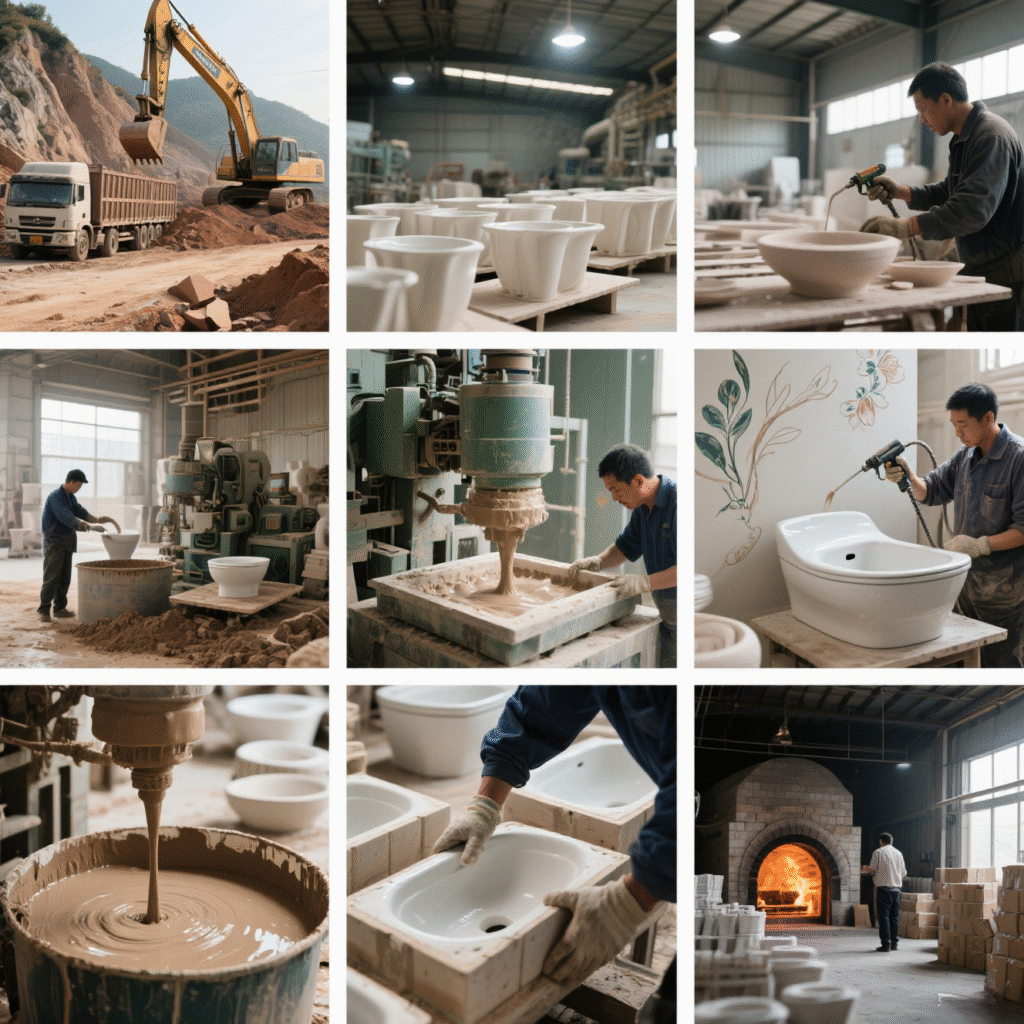 2. Molding Preparation: Transport clay to the factory, prepare molds for shaping sanitary ware (e.g., basins, toilets).
