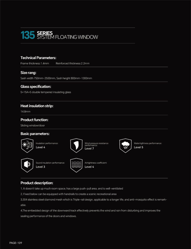 135 Thermal-break Floating 3-track Sliding Window(with flyscreen)