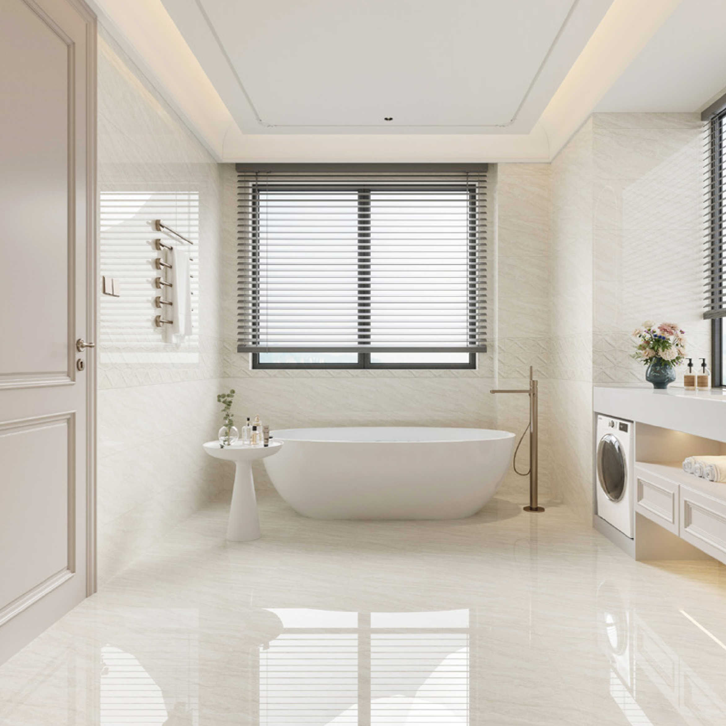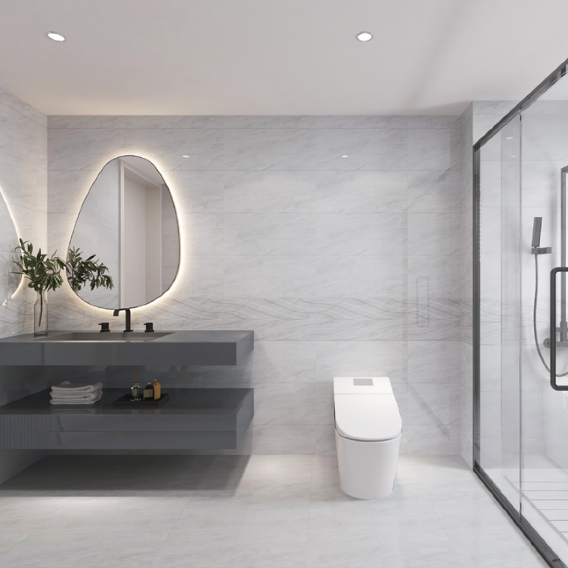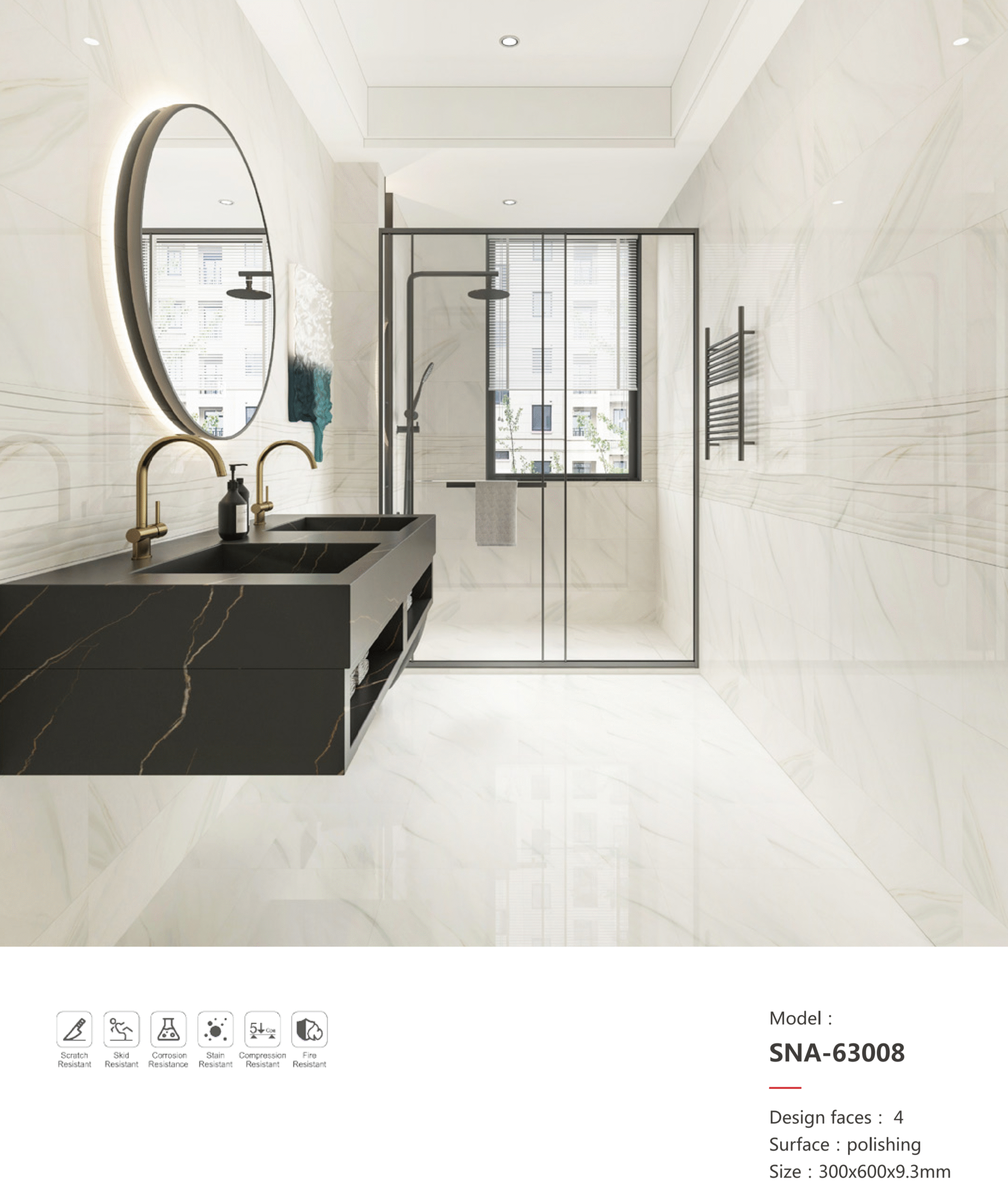 Classic Grey Marble-Effect Tile: Water-Resistant & Durable for Commercial Bath Fit-outs