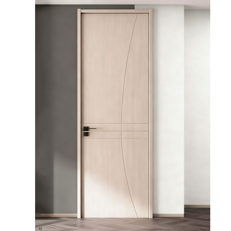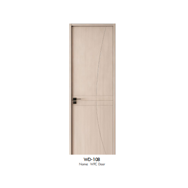Curved Design Wood Grain WPC Interior Door – Modern Stylish Indoor Room Door with Black Hardware WPC Door