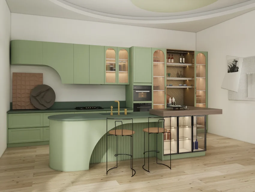 Curved Island and Sage Green Cabinets Design