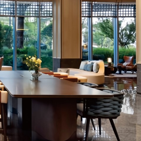 Hotel Sophisticated Dining & Lounge Furniture Suite (Round Dining Tables + Accent Chairs + Modular Sofas) – SASO-Approved for Saudi High-End Hospitality Projects