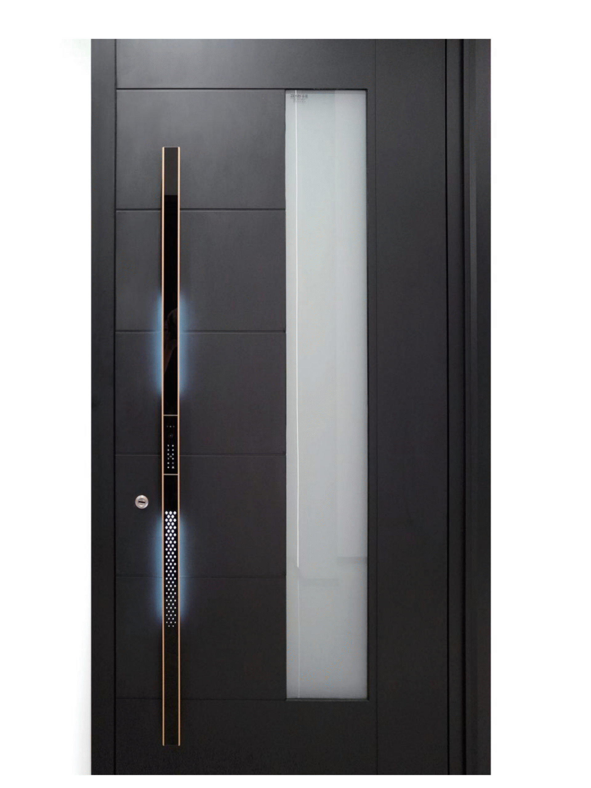 Modern Aluminum Thermal Armor Door with Frosted Glass & Illuminated Handle
