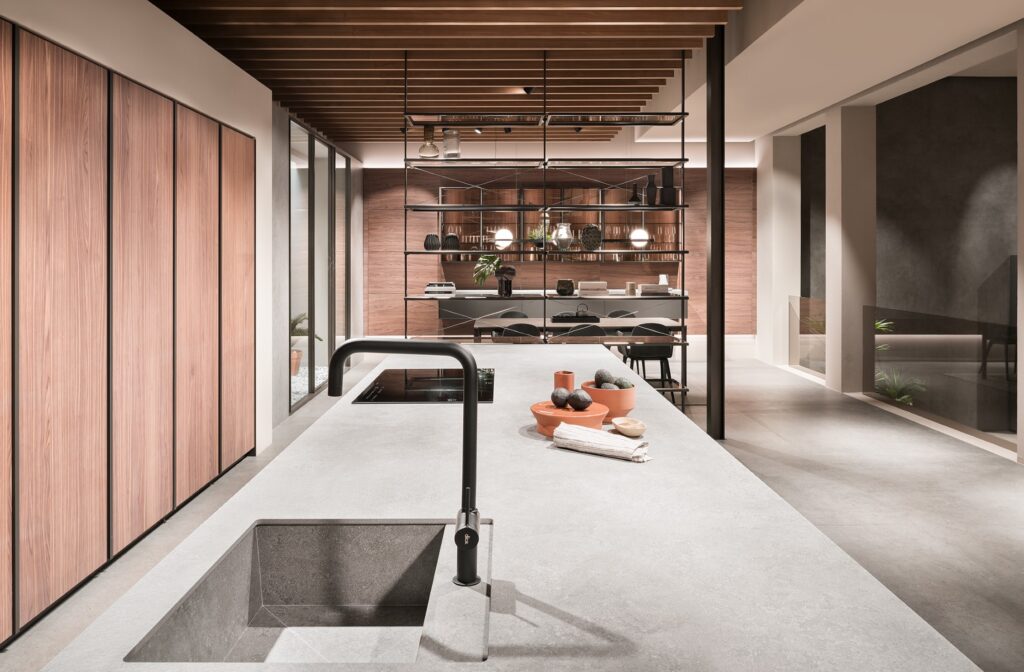 Modern Straight-Line Melamine Kitchen Cabinet – White & Wood Grain Design