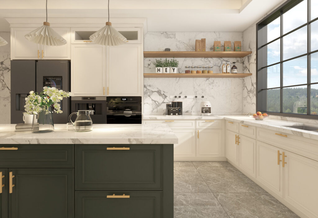Neutral Slim Shaker Cabinets with Classic Appeal