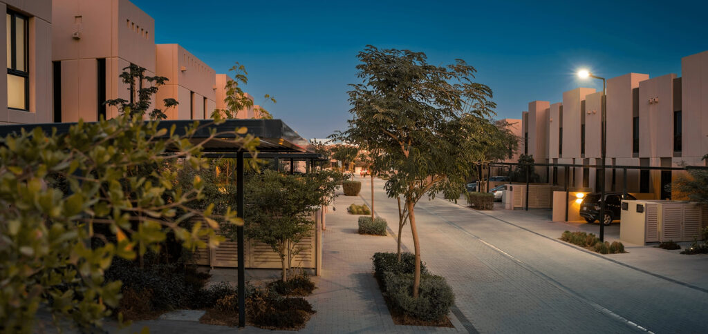 The architectural design of ROSHN SEDRA is a harmonious blend of traditional Saudi elements and contemporary style. The buildings, as seen in the images, feature earth – toned facades that pay homage to the local heritage, yet the clean lines and modern construction techniques give them a distinctly up – to – date look. Whether it’s the single – family homes or the larger residential complexes, each structure has been carefully crafted to provide both aesthetic appeal and functional living spaces.