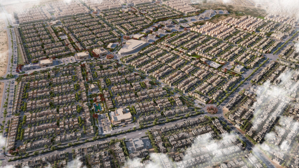 One of the most striking aspects of ROSHN SEDRA is its community – centric layout. The overhead renderings reveal a well – organized network of streets, parks, and open spaces. Tree – lined avenues create a pleasant environment for walking, cycling, and socializing, fostering a strong sense of community among residents. There are also dedicated areas for greenery and landscaping, which not only enhance the visual beauty of the development but also contribute to a healthier living environment by providing fresh air and natural shade.
